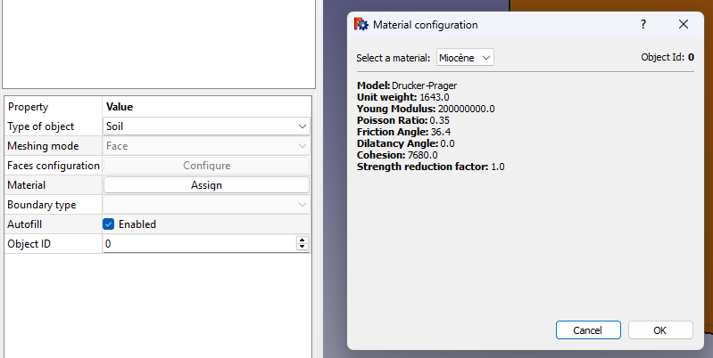 I’ll attach some screenshots of the material properties and soil assignments so you can check if something looks wrong.